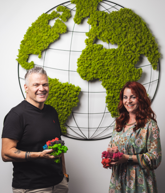 Unsere handgefertigten Moosbilder, Wände, Logos und Dekoelemente aus isländischem Rentiermoos bringen Stil, Ruhe und Frische in Ihre Räume – ganz ohne Pflege.